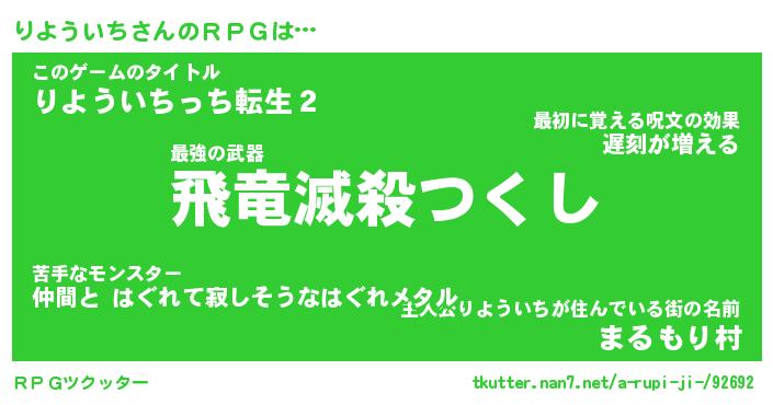 | ファンタジー風あだ名 | 『リヨフェル』『エターナルリヨウイチー』 |
