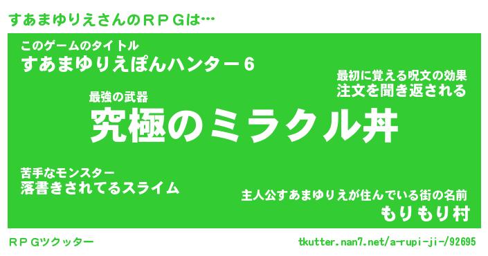 | 伝説のあだ名 | 『不死鳥の竜騎士すあまゆりえ』 |