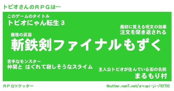 | ファンタジー風あだ名 | 『トビフェル』『エターナルトビオー』 |