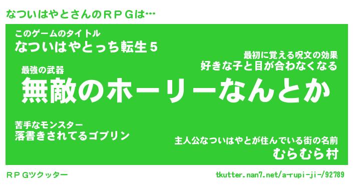 | 伝説のあだ名 | 『封印されし傭兵なついはやと』 |