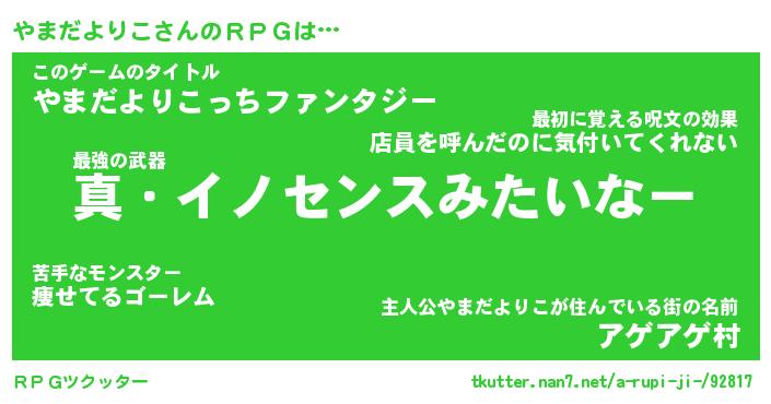 | 伝説のあだ名 | 『封印されしスナイパーやまだよりこ』 |