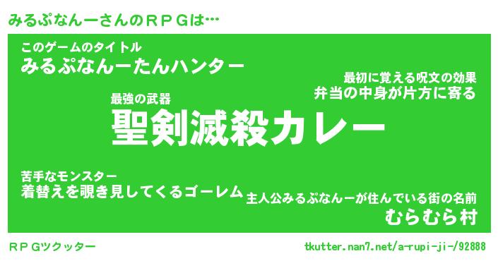 | 男性向けラノベタイトル風あだ名 | 『みるぷなんーの憂鬱』 |