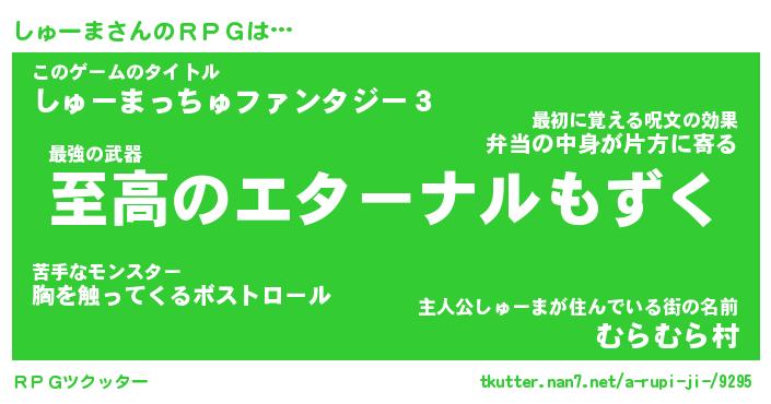 | ファンタジー風あだ名 | 『シュフェル』『エターナルシューマー』 |