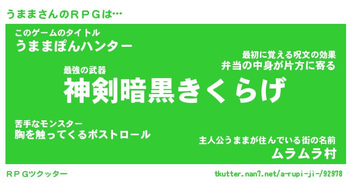 | 男性向けラノベタイトル風あだ名 | 『うままの憂鬱』 |