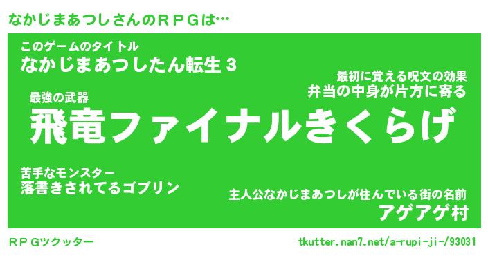 | 伝説のあだ名 | 『封印されし竜騎士なかじまあつし』 |
