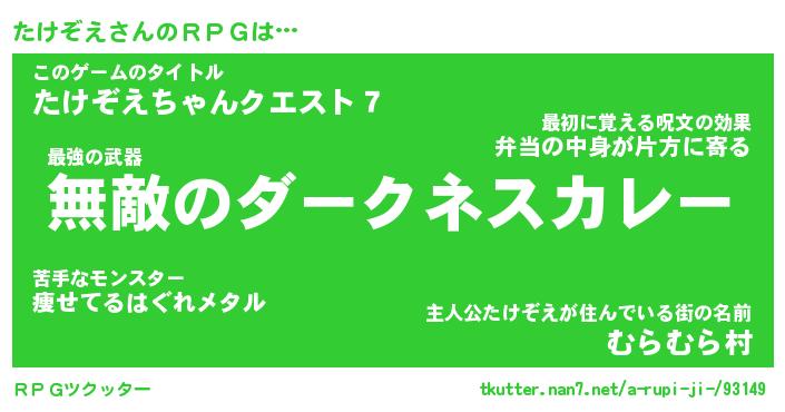 | ファンタジー風あだ名 | 『タケフェル』『エターナルタケゾエー』 |