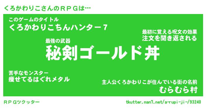 | 伝説のあだ名 | 『伝説の傭兵くろかわりこ』 |