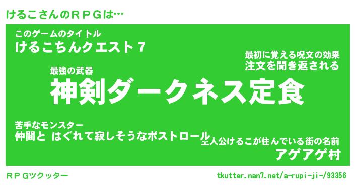 | 男性向けラノベタイトル風あだ名 | 『けるこの憂鬱』 |