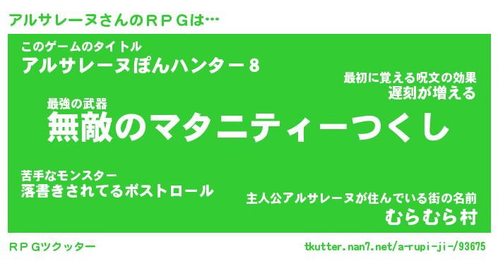| 男性向けラノベタイトル風あだ名 | 『アルサレーヌアートオンライン』 |