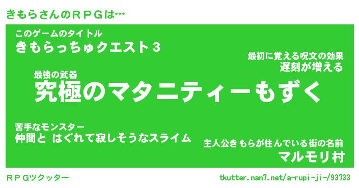 | 男性向けラノベタイトル風あだ名 | 『きもらの憂鬱』 |