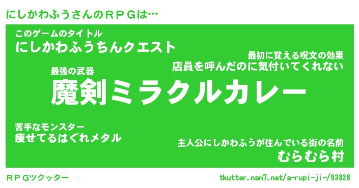 | ヒーロー風カッコイイあだ名 | 『スーパーニシカワフウ』『銀牙騎士ニシ』 |
