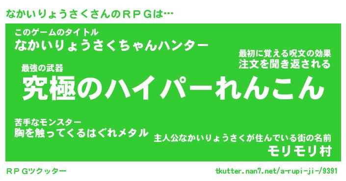 | 男性向けラノベタイトル風あだ名 | 『ナカイリョウサクアートオンライン』 |