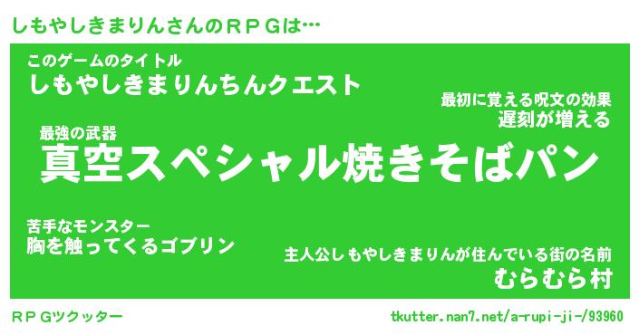 | 伝説のあだ名 | 『封印されし竜騎士しもやしきまりん』 |