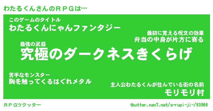 | ファンタジー風あだ名 | 『ワタフェル』『エターナルワタルクンー』 |