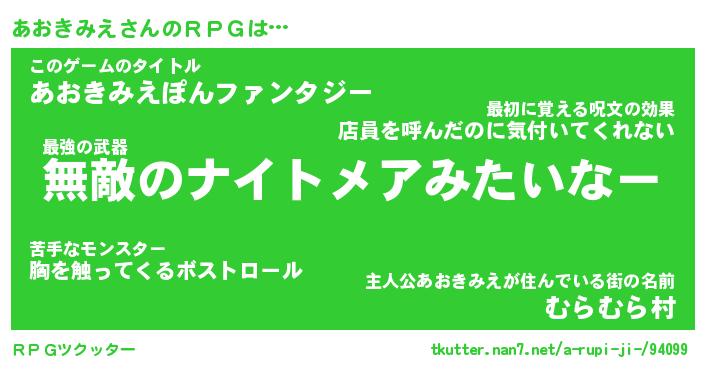 | 男性向けラノベタイトル風あだ名 | 『アオキミエアートオンライン』 |