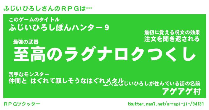 | 男性向けラノベタイトル風あだ名 | 『フジイヒロシアートオンライン』 |