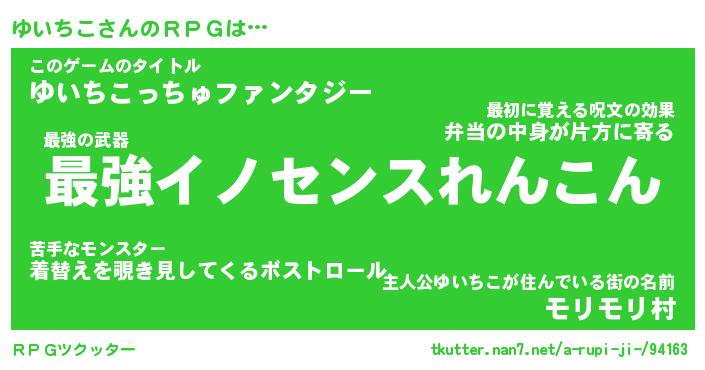| ファンタジー風あだ名 | 『ユイフェル』『エターナルユイチコー』 |