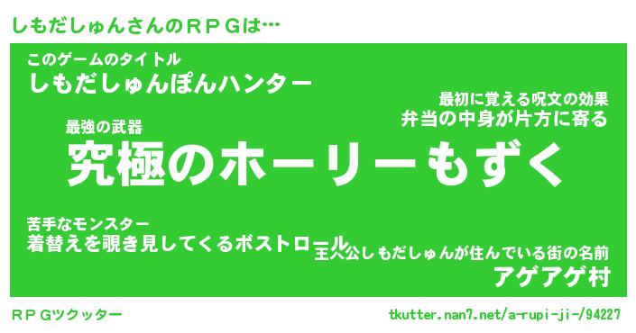 | 伝説のあだ名 | 『不死鳥の傭兵しもだしゅん』 |