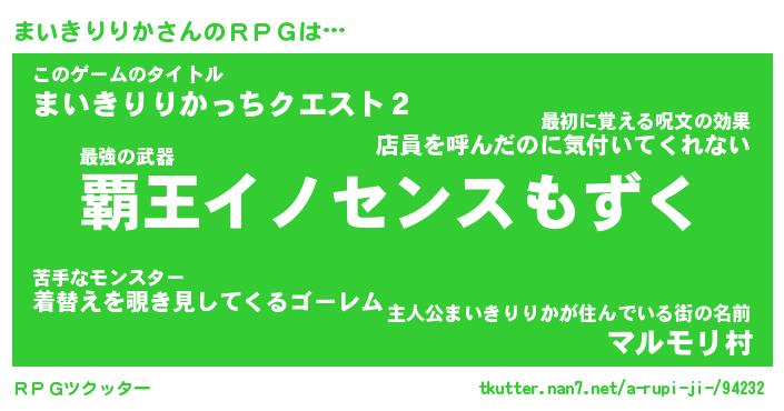 | 伝説のあだ名 | 『封印されしスナイパーまいきりりか』 |