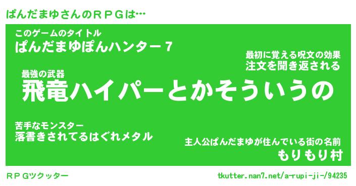 | 伝説のあだ名 | 『封印されし竜騎士ぱんだまゆ』 |