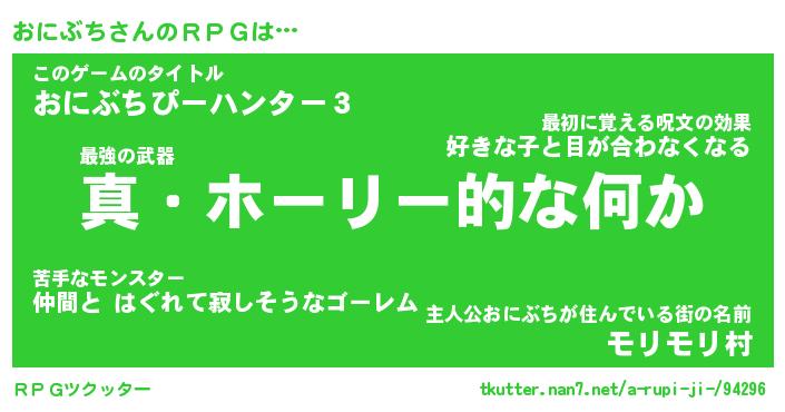 | 伝説のあだ名 | 『封印されし傭兵おにぶち』 |