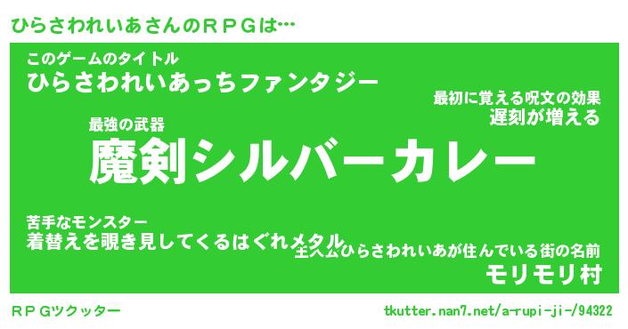 | 胡散臭い通販商品みたいなあだ名 | 『必ず成功する水晶球…その名も「ひらさわれいあ」』 |