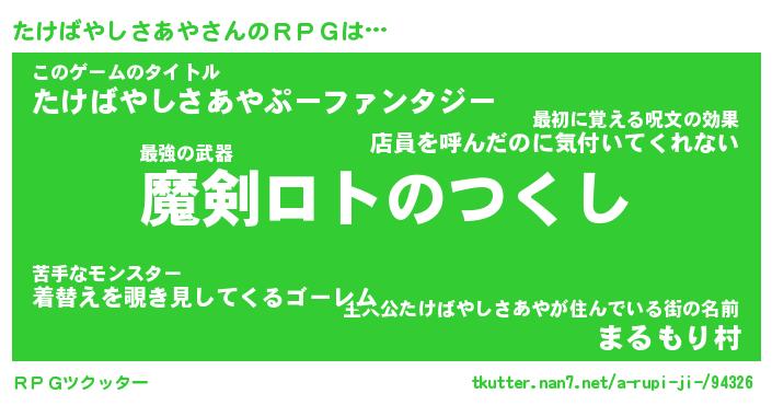 | 伝説のあだ名 | 『伝説の竜騎士たけばやしさあや』 |