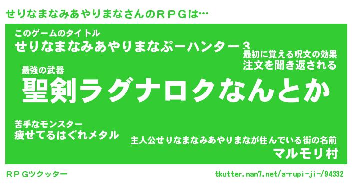 | ファンタジー風あだ名 | 『セリフェル』『ファントムセリス』 |