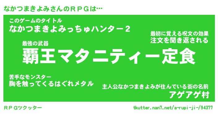 | 伝説のあだ名 | 『封印されしスナイパーなかつまきよみ』 |