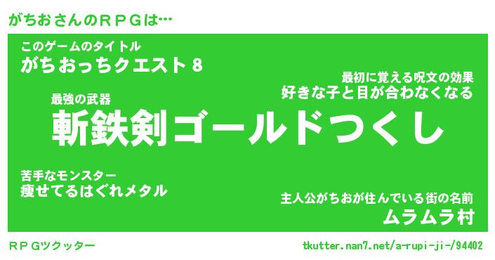 | 伝説のあだ名 | 『伝説の傭兵がちお』『最強の忍者がちお』 |
