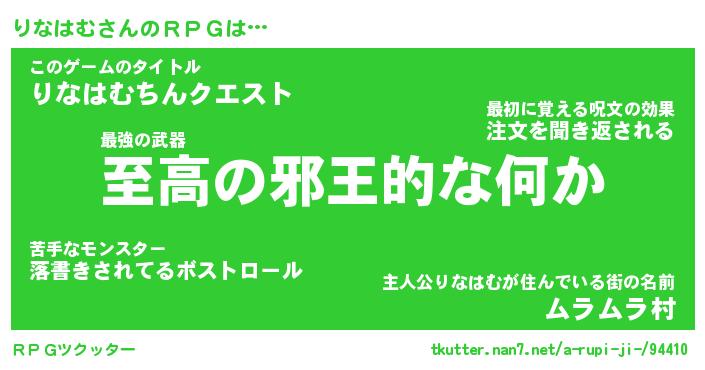 | 女子向けラノベタイトル風あだ名 | 『りなはむ姫と円卓の騎士』 |