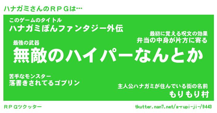 | 意味不明あだ名 | 『ペロリンハナガミ』『永久保存ハナガミ』 |