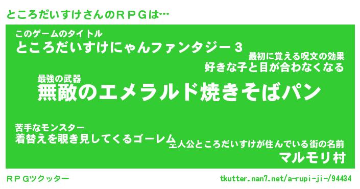 | 男性向けラノベタイトル風あだ名 | 『トコロダイスケアートオンライン』 |