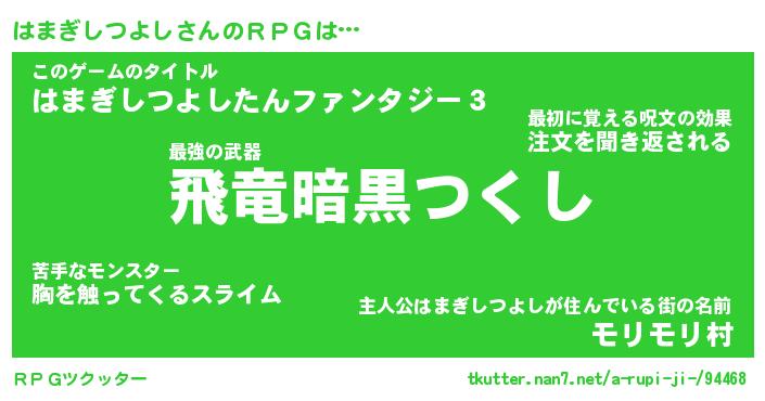| 伝説のあだ名 | 『封印されし傭兵はまぎしつよし』 |