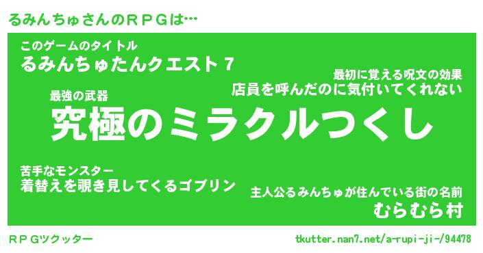 | 胡散臭い通販商品みたいなあだ名 | 『モテモテ間違いなしブレスレット…その名も「るみんちゅ」』 |