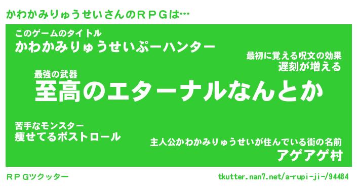 | 男性向けラノベタイトル風あだ名 | 『カワカミリュウセイアートオンライン』 |