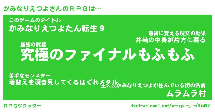 | 伝説のあだ名 | 『不死鳥の竜騎士かみなりえつよ』 |