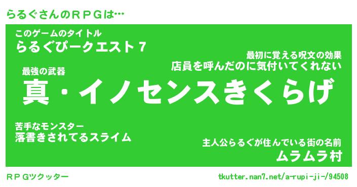| 伝説のあだ名 | 『封印されしスナイパーらるぐ』 |