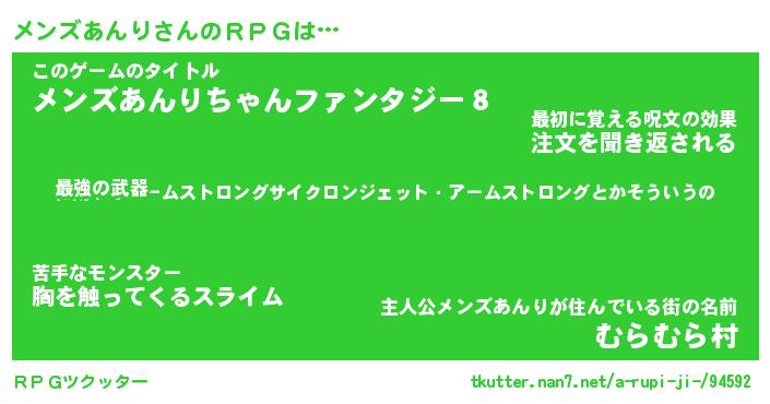 | ファンタジー風あだ名 | 『メンフェル』『ファントムメンス』 |