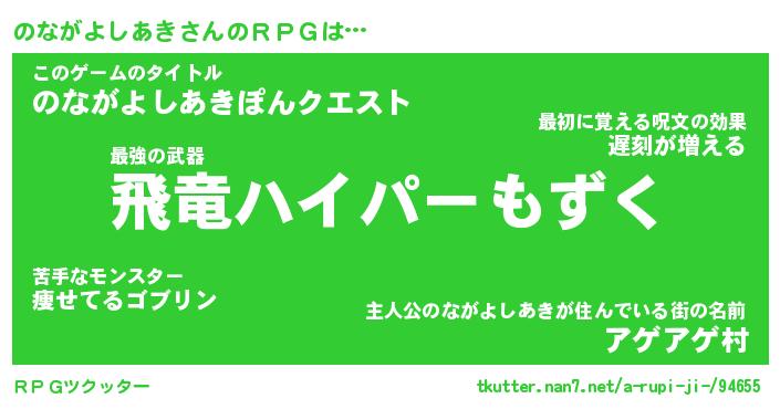 | 男性向けラノベタイトル風あだ名 | 『ノナガヨシアキアートオンライン』 |