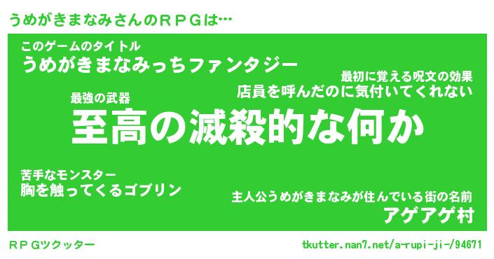 | 男性向けラノベタイトル風あだ名 | 『ウメガキマナミアートオンライン』 |