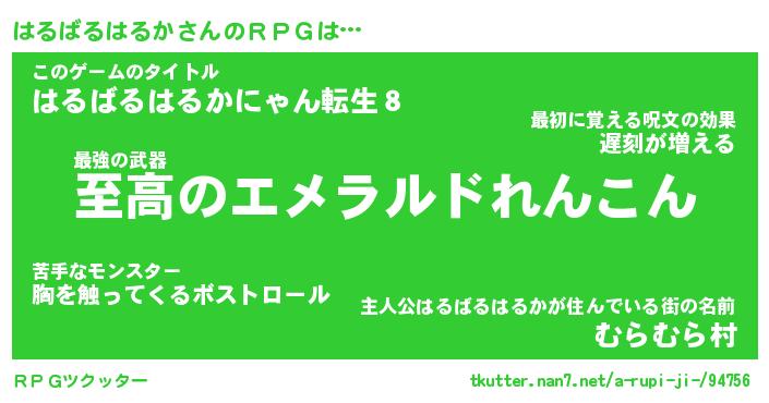 | 男性向けラノベタイトル風あだ名 | 『ハルバルハルカアートオンライン』 |