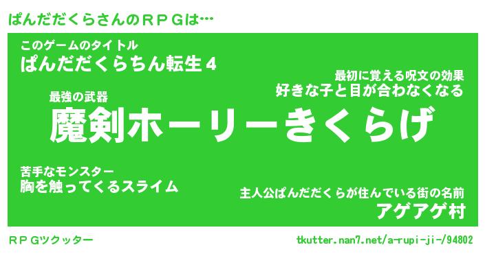 | 胡散臭い通販商品みたいなあだ名 | 『必ず成功する水晶球…その名も「ぱんだだくら」』 |