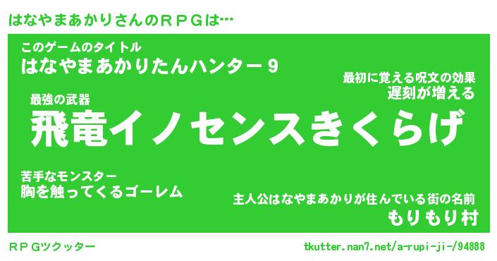 | 伝説のあだ名 | 『封印されしスナイパーはなやまあかり』 |