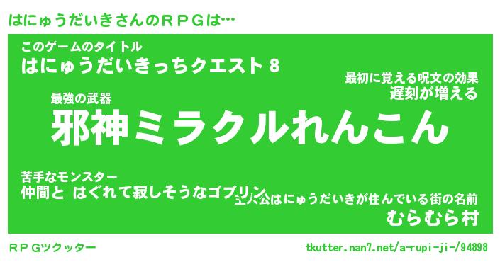 | 伝説のあだ名 | 『封印されし竜騎士はにゅうだいき』 |