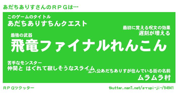 | 伝説のあだ名 | 『封印されし竜騎士あだちありす』 |