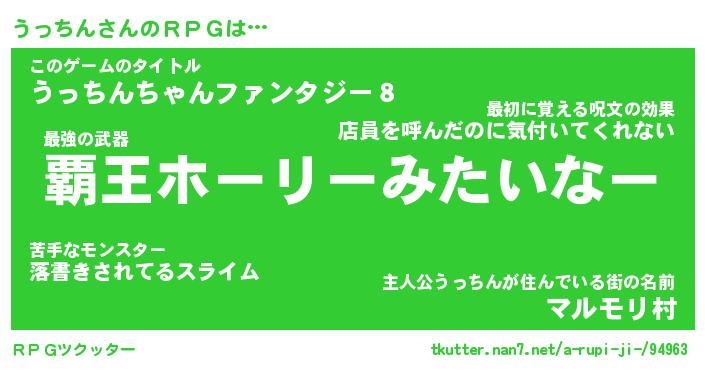 | 伝説のあだ名 | 『封印されし傭兵うっちん』 |