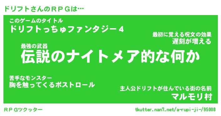 | 男性向けラノベタイトル風あだ名 | 『ドリフトの憂鬱』 |