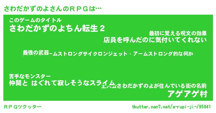 | 伝説のあだ名 | 『封印されし竜騎士さわだかずのよ』 |