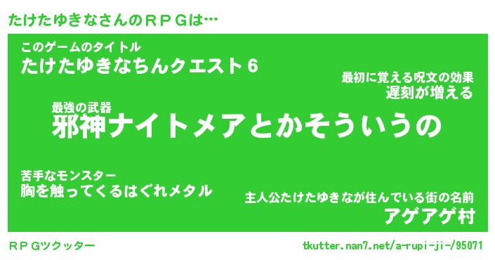 | 伝説のあだ名 | 『封印されしスナイパーたけたゆきな』 |